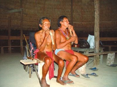 De oudste inwoners van het bos, de indianen (ook wel de inheemse genoemd), vestigen zich langs de rivieren. Langs de rivieren ligt geschikte grond voor het verbouwen van landbouw. eeuwen lang waren zij de enige bewoners van het regenwoud. Tegenwoordig hebben de twaalfduizend inheemse en veertigduizend Marons nog maar weinig inspraak over hun eigen traditionele woongebied.Sinds de twintigste eeuw komen inheemse in het binnenland steeds meer in aanraking met de westerse leefwijze, en als gevolg daarvan dreigt hun cultuur deels verloren te gaan.