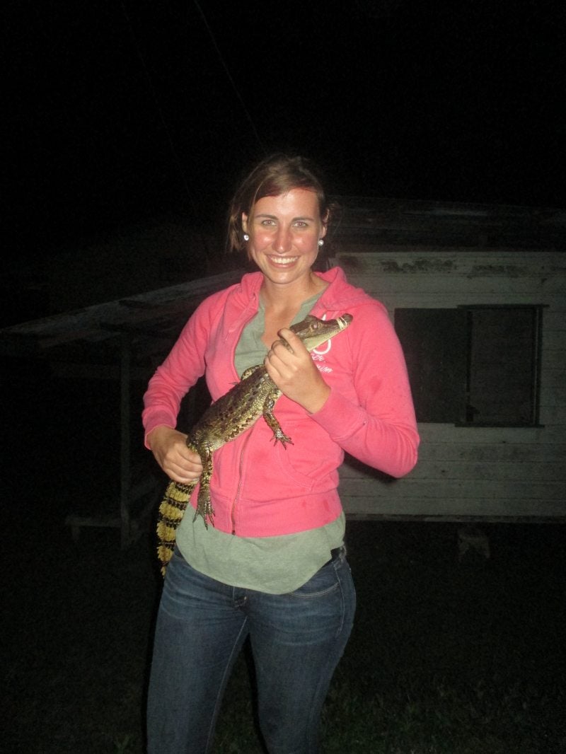 Natuurlijk was ik de gelukkige die als eerste de kaaiman vast moest houden. (NOT)