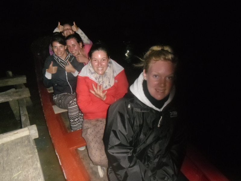 met Atina naast me die inmiddels ook een kaaiman in haar handen kreeg gedrukt zat ik gepropt in het bootje.